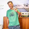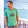 even better with time. A heathered finish and waterbased ink screen prints keep things